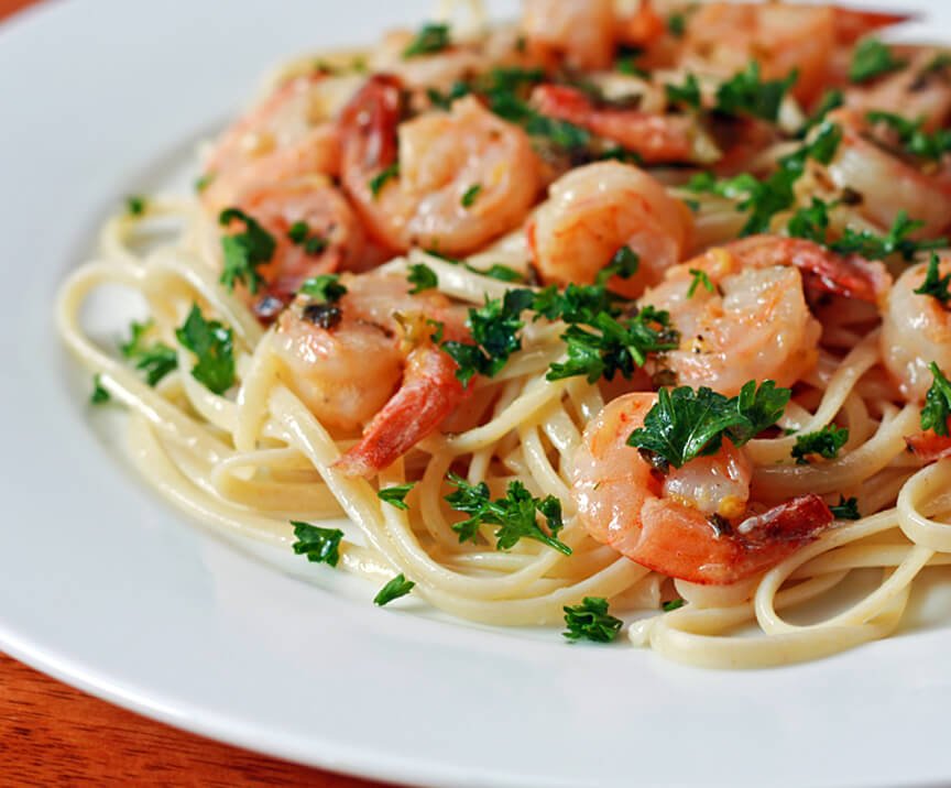 Pasta pairs perfectly with shrimp. It’s a classic and a no-brainer that will make a meal complete. Just make sure you have a crisp white wine to go with this meal and a slice of cheesecake for dessert. Wouldn’t want to mess up any pairings.